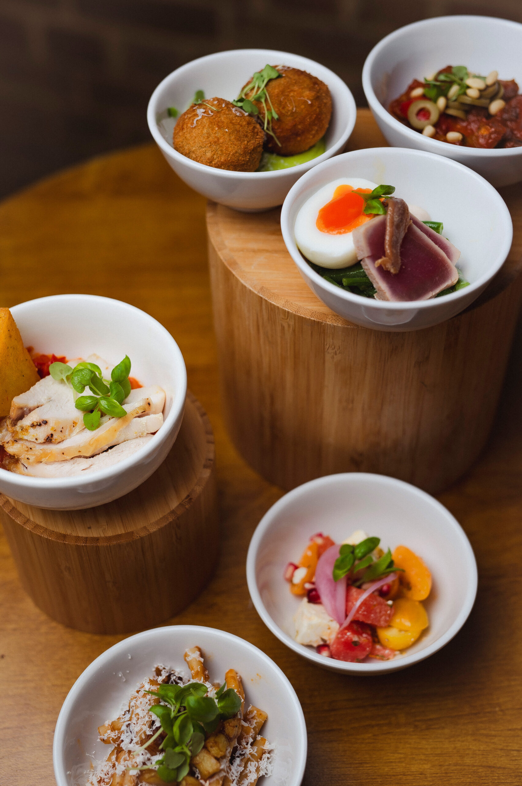 Choose from individually potted fruit salads, boiled eggs and spinach, Greek yoghurt with granola and berries, filled English muffins, bagels or porridge (in winter).