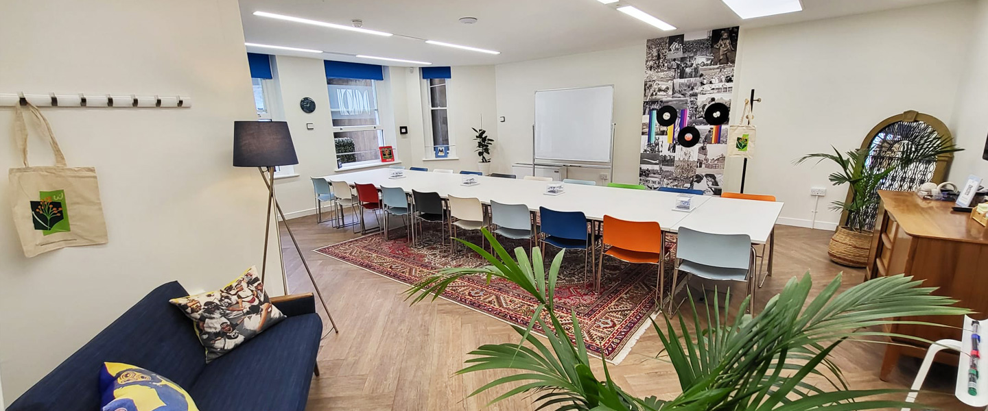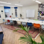 Stylish, flexible, medium-sized space for meetings, training or workshops. Feel good, think better and innovate more in this inspiring environment. It’s tucked away in a private corner so 1969 is a good choice if discretion is a factor. This room is also a winner due to its 85-inch ultra HD smart TV.