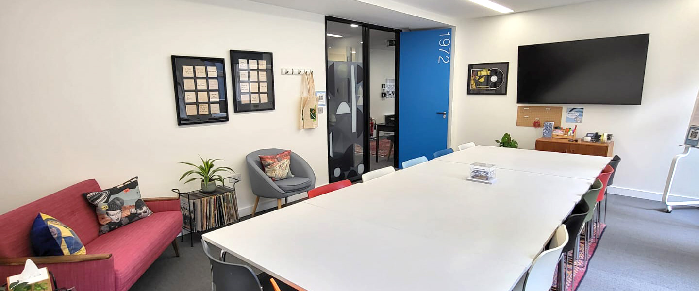 Light and bright space for thinking and learning, close to the hustle and bustle of Holborn and Covent Garden, but surprisingly calm, even serene. Presenting and holding video conferences in this smaller, cosy room is made easier by the wall-mounted 65-inch ultra HD smart TV.