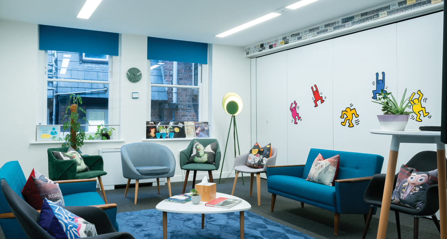 Complete with a 65-inch ultra HD smart TV, 1990 is a carefully crafted, smaller meeting space for better outcomes. The styling in the room nods to moments of musical history from 1990 and is designed to spark ideas and conversations.
