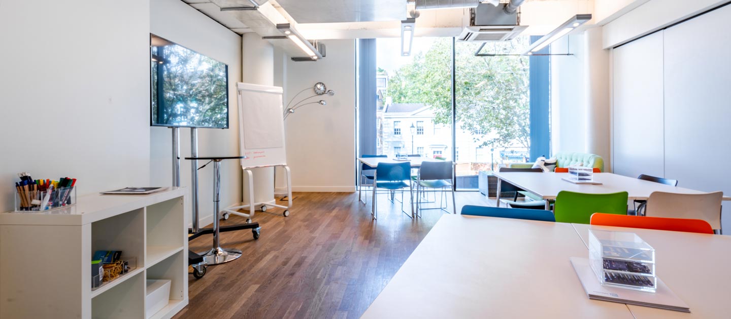 Light and bright, with terrific views over the rooftops of Clerkenwell Green. Perfect medium-sized room, holding up to 30 people.