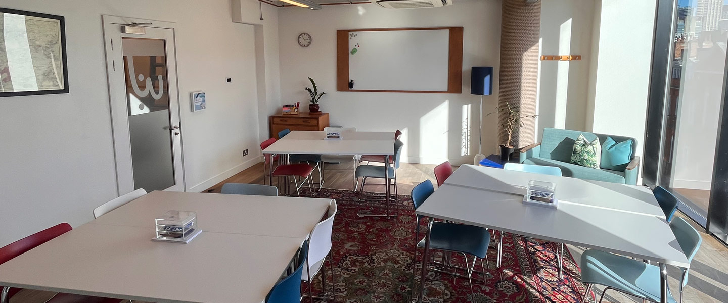 Our hemp room is a cracking space with plenty of natural light and views over the city. Perfect for board meetings, training and presentations.