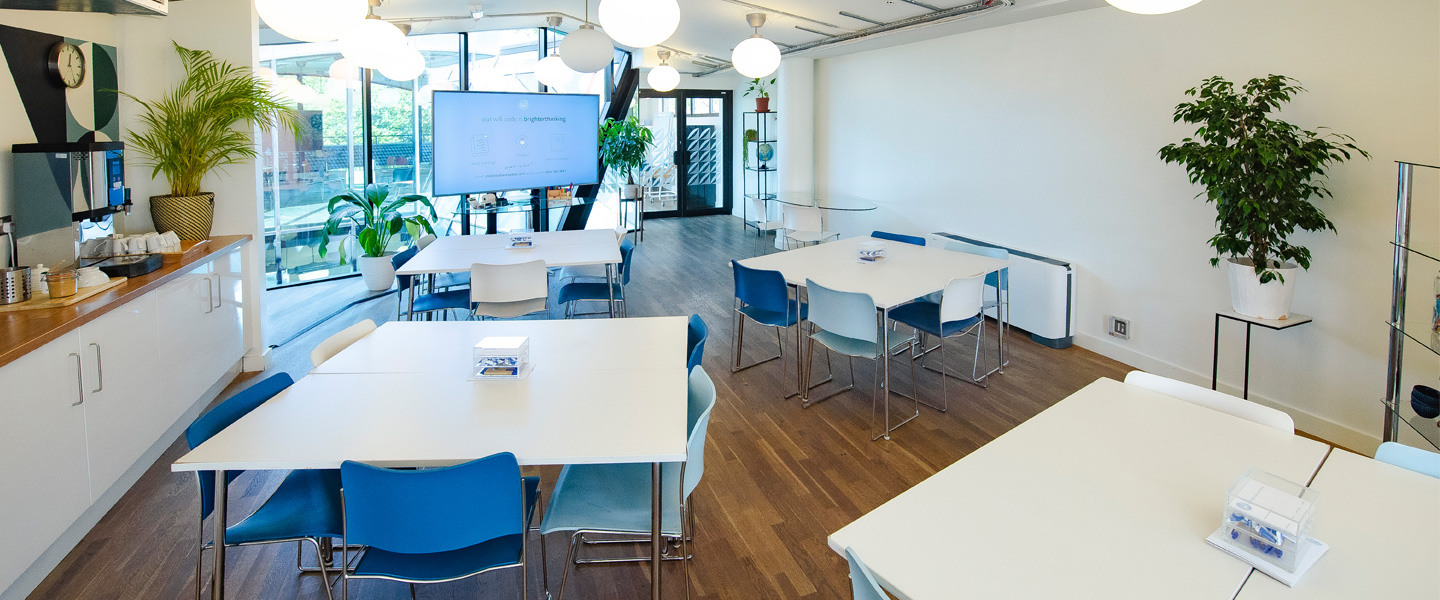 A private kitchen with hot drinks facilities, a fridge and plenty of snacks keeps energy levels up without breaking the flow. For presentations, the 86″ Ultra HD 4K LED TV ensures visuals that really wow.