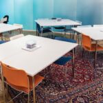 This is one of our favourite rooms… loads of natural daylight and super-stylish curved blue polycarbonate walls. Great for medium-sized meetings.